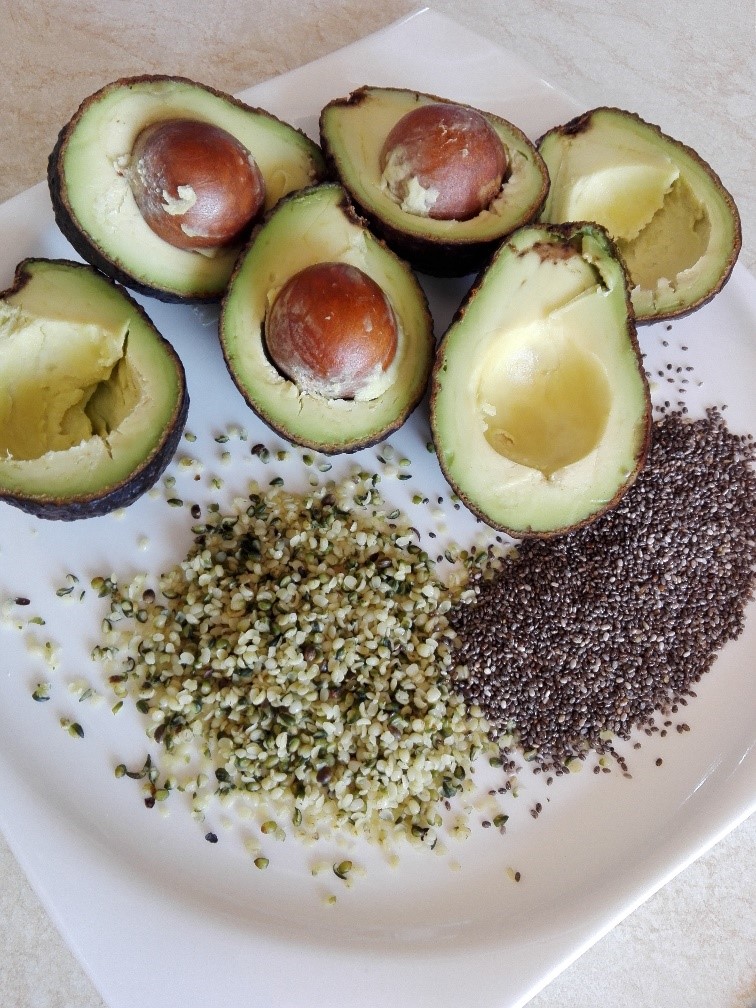 Nachystáme si avokáda, které rozřízneme na půl a vyloupneme z nich pecku. Avokádo lžičkou vyloupneme z jeho slupky a dáme do misky spolu se solí, pepřem, česnekem a třeba i zázvorem, vše promačkáme vidličkou. Nakonec přidáme konopné a chia semínka a vše promícháme a můžeme podávat na stůl!