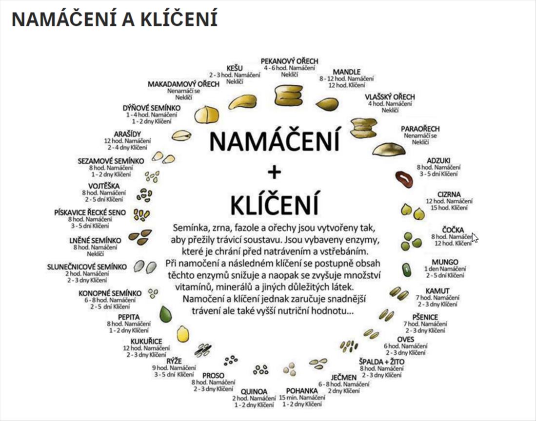Semínka též jsou zdrojem antioxidantů, vlákniny, minerálů (především vápník, hořčík, železo, mangan a zinek) , vitaminů skupiny B a E, zdravých tuků - omega mastných kyselin. Semínka pomáhají pro výživu mozku a mozkových funkcí, tzv. Brainfood. Jsou vhodným zdrojem zejména pro vegany a vegetariány pro doplnění např, nezbytného vitaminu B12 v rostlinné podobě.
